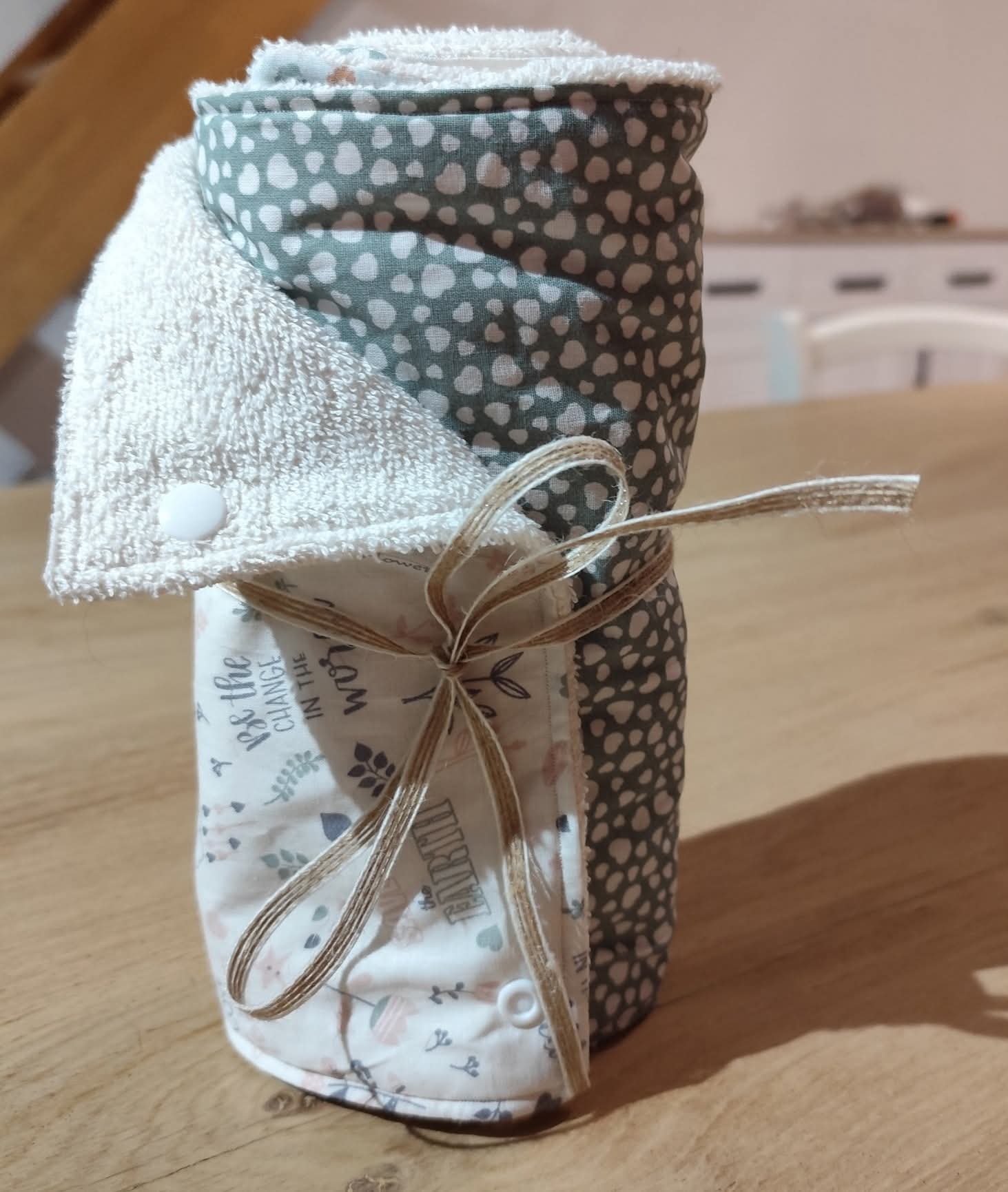 Dans un petit atelier situé au cœur du Jura, je conçois artisanalement une variété d'articles. Vous y trouverez des accessoires pour bébés, des solutions zéro déchet pour la cuisine, ainsi que des produits réutilisables.
